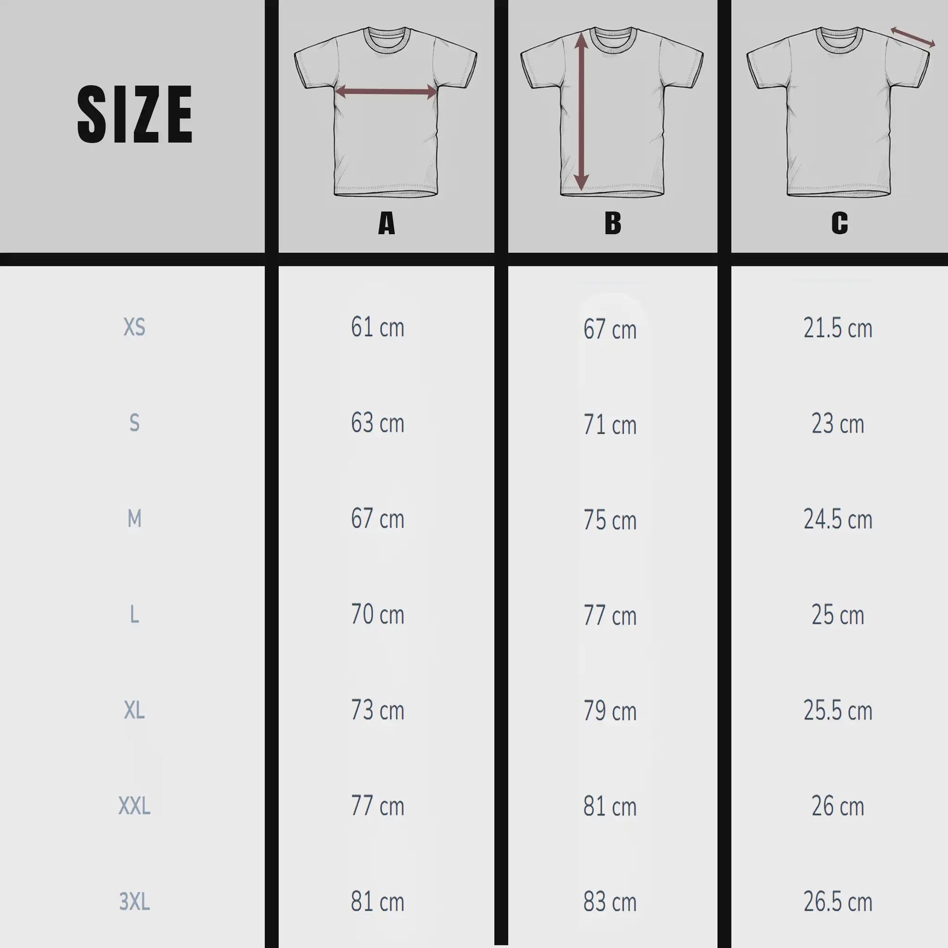 TIPP: Legen Sie ein T-Shirt, das Ihnen gut passt, flach hin und messen Sie entlang der Linien.
